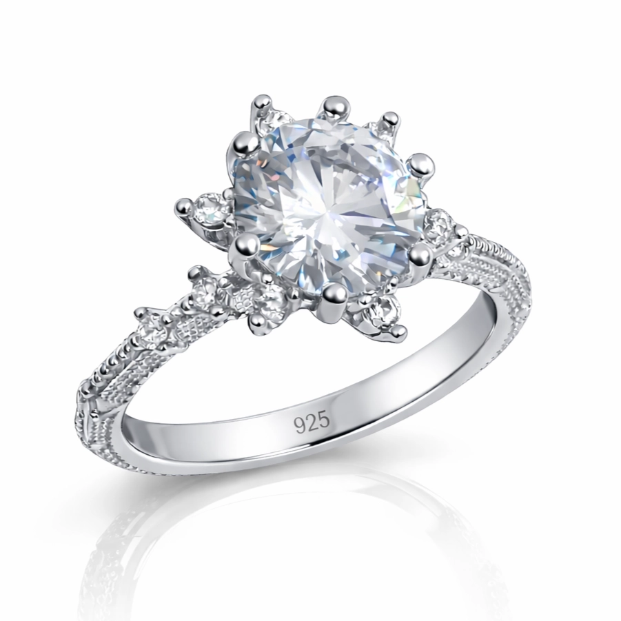 Özel günlerde kadınların tercihleri arasında ilk sıralarda yer alan yüzükler pek çok kadının kurtarıcısıdır. Spor ve klasik her kıyafetle kombinleyebileceğiniz çiçek desenli yüzük, çok uygun fiyatla karşınızda. Zarif çiçek motifi üzerine işlenen küçük beyaz zirkon taşlarla desteklenmiş bu modelle şıklığınızı tamamlayabilirsiniz. Bu yüzük modeli 925 ayar gümüşten imal edilmiştir. Gümüş üzerine rodyum kaplama yapılmıştır. Rodyum kaplama yapılan gümüş yüzük modelleri parlaklığını uzun süre muhafaza eder ve oksitlenmesi gecikir. Tüm gümüş yüzüklerde olduğu gibi gümüş çiçek desenli kadın yüzük modeli de tamamen el emeği ile üretilmiştir. Gümüş ve değerli taşlar nedeniyle belirtilen ortalama ürün ağırlığında ± %10 sapma olabilmektedir.