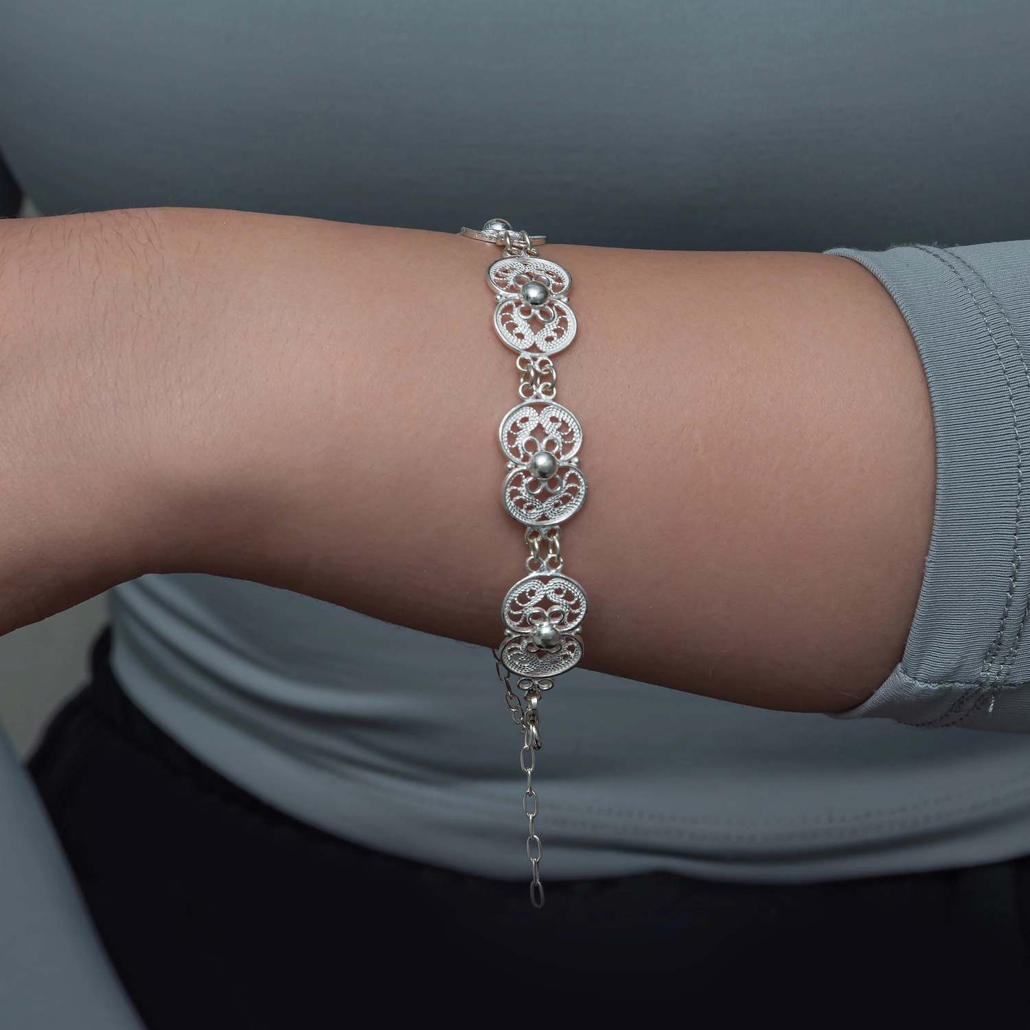 925 ayar gümüşten üretilen bu bileklik, hafif yapısı sayesinde gün boyu rahatlıkla kullanılabilir. Ayarlanabilir zincir detayı farklı bilek ölçülerine uyum sağlar ve kullanım kolaylığı sunar. Şıklığınızı günlük hayatta, özel davetlerde veya hediye olarak tamamlayabileceğiniz bu model; el emeğinin değerini taşıyan zarif bir parça arayanlar için ideal bir seçimdir.Gümüş ve değerli taşlar nedeniyle belirtilen ortalama ürün ağırlığında ± %10 sapma olabilmektedir.