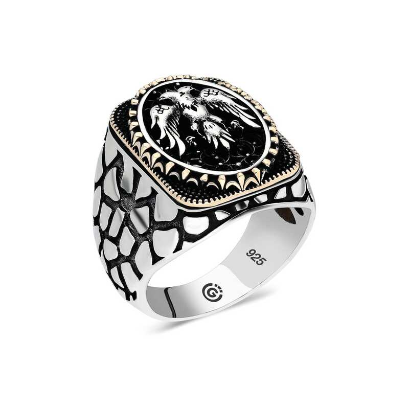 Gümüş üzerindeki çift başlı kartal oval erkek yüzük modeli günün her anında kullanabileceğiniz şık bir aksesuardır. Bu yüzüğü; kendinize ya da sevdiklerinize doğum gününde, babalar gününde ya da özel günlerde hediye edebilirsiniz. Çift başlı kartal oval erkek yüzük modeli 925 ayar gümüşten imal edilmiştir. Gümüş üzerine oksit kaplama yapılmıştır. Oksit kaplama yapılan gümüş erkek yüzük modelleri parlaklığını uzun süre muhafaza eder. Tüm erkek yüzüklerde olduğu gibi gümüş çift başlı oval erkek yüzük modeli de el emeği ile üretilmiştir. Gümüş ve değerli taşlar nedeniyle belirtilen ortalama ürün ağırlığında ± %10 sapma olabilmektedir.​