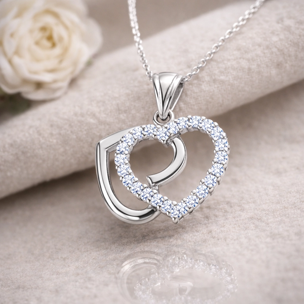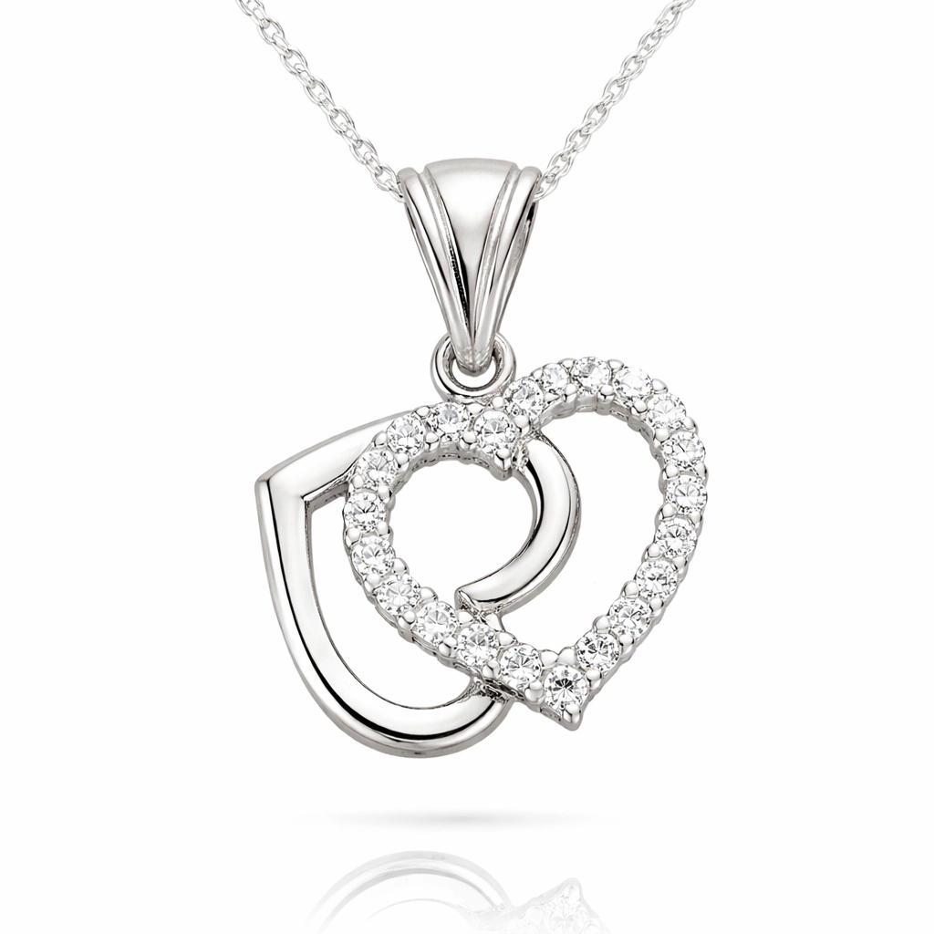 Gümüş Çift Kalpli Bayan Kolye