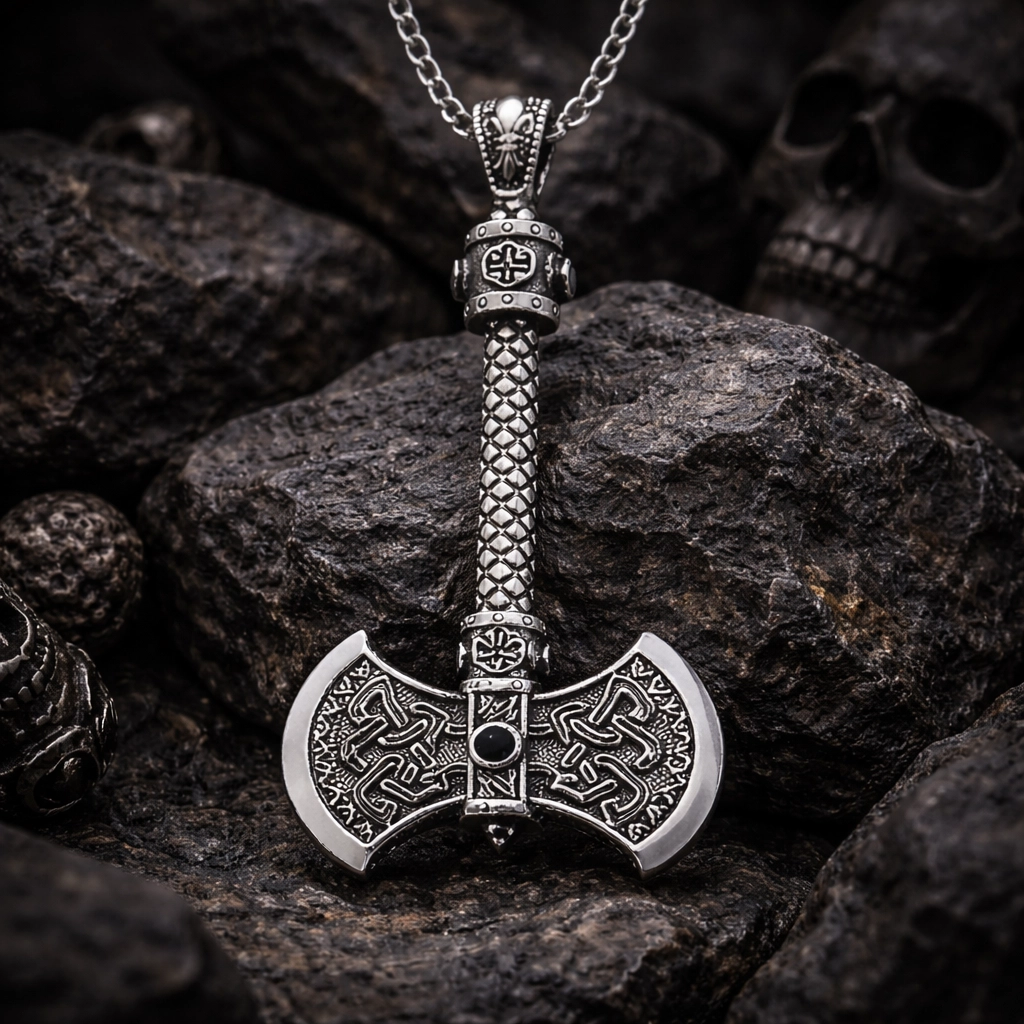 Çift taraflı balta bir ilahiyete uyan eski bir Girit simgesidir. Bu simgeyi taşıyan kolye modeli 925 ayar gümüşten imal edilmiştir. Gümüş üzerinde oksit kaplama yapılmak suretiyle eskitme görünüme kavuşmuştur. Siz de çift taraflı balta kolye modelini severek kullanabilir sevdiklerinize armağan edebilirsiniz. Ortalama zincir uzunluğu 55 cm"dir. Ürünlerimizin tamamı el emeği ile üretilmiştir. Gümüş ve değerli taşlar nedeniyle belirtilen ortalama ürün ağırlığında ± %10 sapma olabilmektedir.