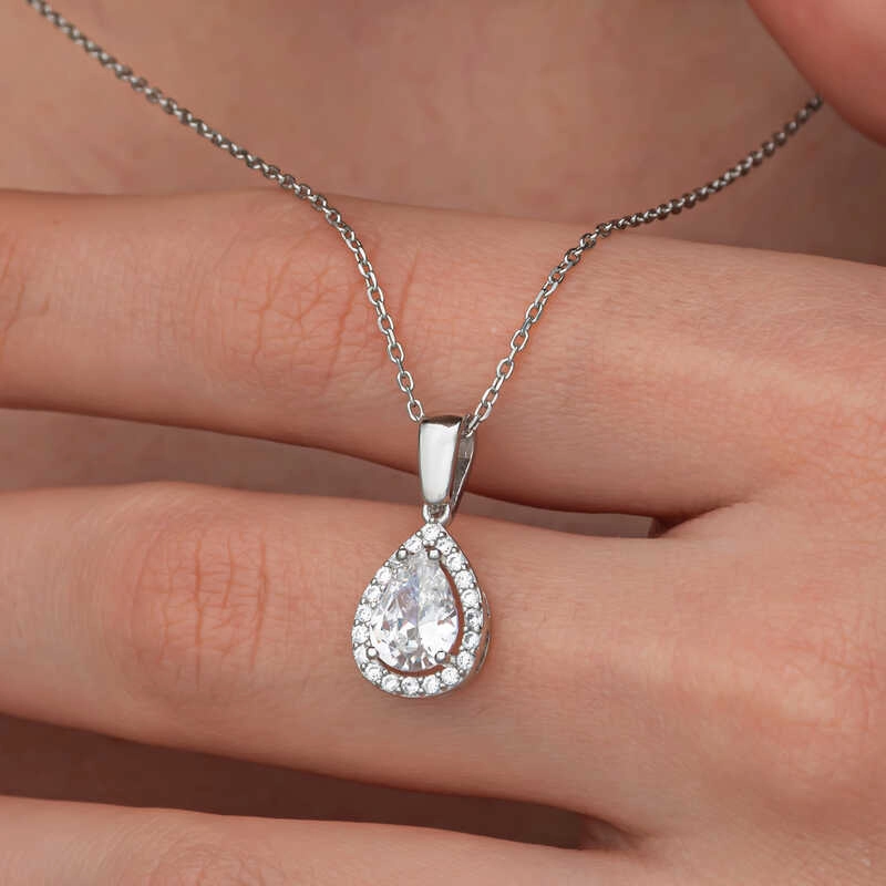 Gümüş Damla Beyaz Zirkon Taşlı Kadın Kolye