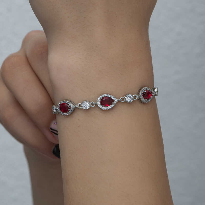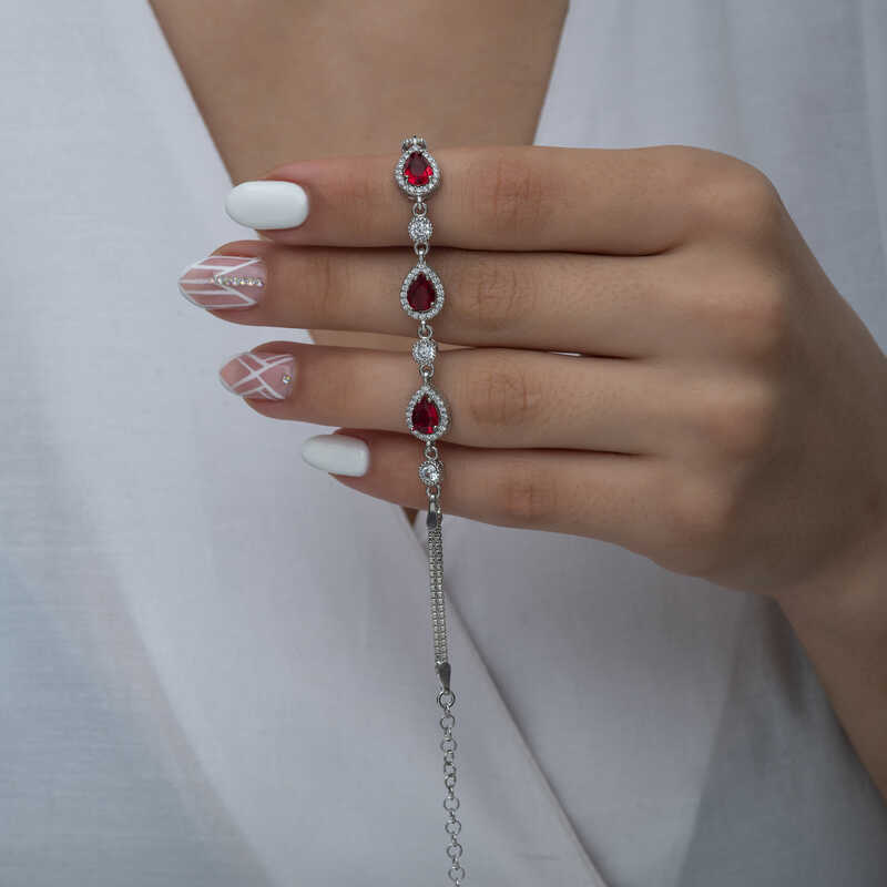 Gümüş Damla Kırmızı Taşlı Su Yolu Kadın Bileklik