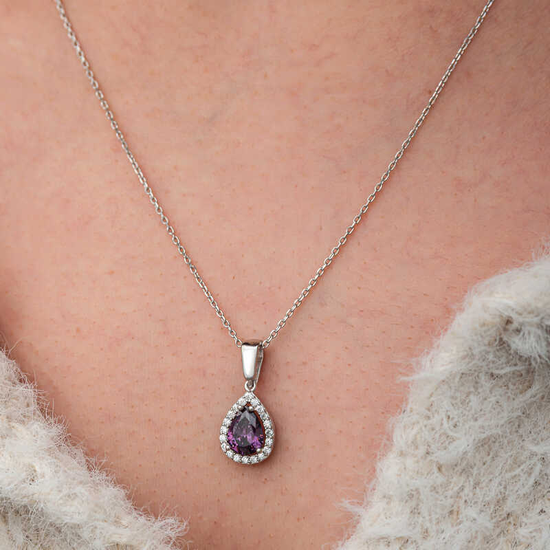 Gümüş Damla Mor Taşlı Kadın Kolye