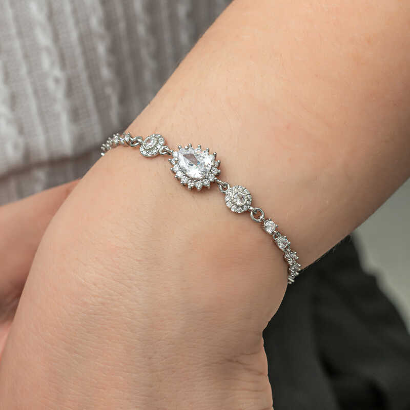 Gündelik hayatta, özel günler ve gecelerde tercih edebileceğiniz ışıl ışıl beyaz renk taşları ile yıldızları anımsatan bu bilekliği severek kullanacaksınız. Şık bir görünüm yakalamak isteyen tüm kadınlara hitap eden, modası geçmeyecek olan damla su yolu gümüş bileklik sizleri bekliyor. Gümüş damla su yolu kadın bileklik; doğum günü hediyesi, sevgililer günü hediyesi veya annelere hediye olarak özel günlerde tercih edilebilecek mükemmel bir seçenektir. Gümüş damla su yolu kadın bileklik 925 ayar gümüşten imal edilmiştir. Gümüş üzerine rodyum kaplama yapılmıştır. Rodyum kaplama yapılan kadın bileklikler parlaklığını uzun süre muhafaza eder ve oksitlenmesi gecikir. Tüm kadın bilekliklerde olduğu gibi gümüş damla su yolu kadın bileklik de el emeği ile üretilmiştir. Gümüş ve değerli taşlar nedeniyle belirtilen ortalama ürün ağırlığında ± %10 sapma olabilmektedir.