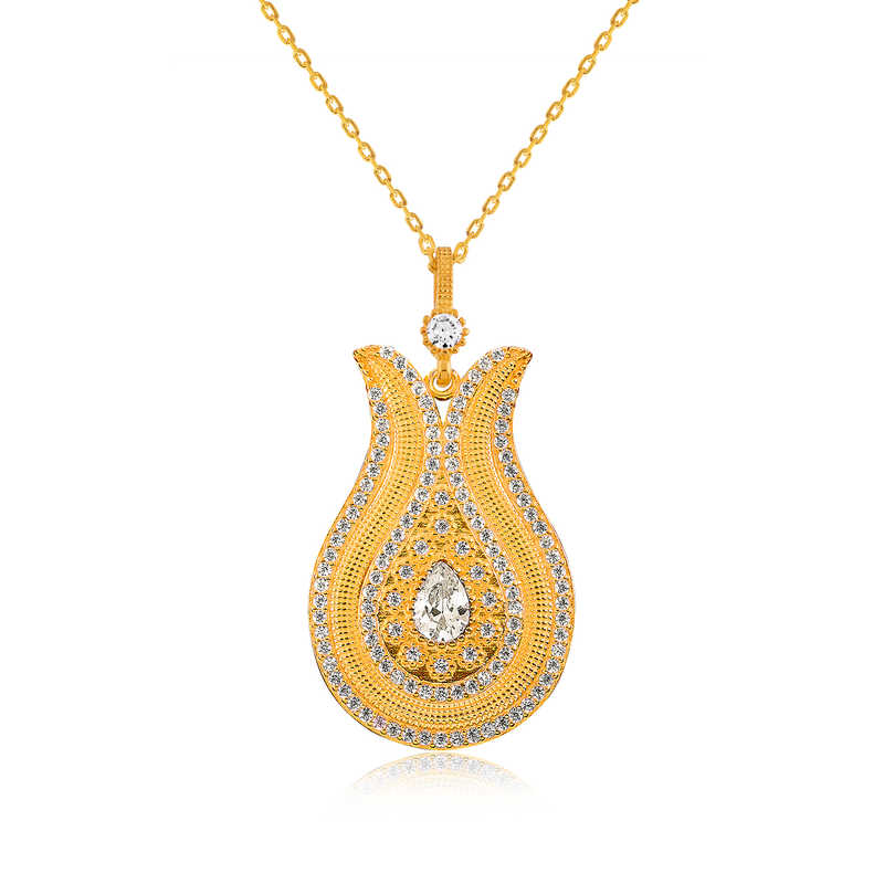 Rengi ve şekli açısından sevgilinin yüzüne, yanağına, dudağına benzetilen "Lale", yine rengi dolayısıyla aşığın yanağına ve içindeki tomurcuklarıyla da aşığın gönlündeki yaralara benzetilmektedir. Tasavvuf düşüncesinde ise; Lale"nin renkli yapraklarının yukarıya doğru olması halinin, bir dervişin dua edişindeki edayı andırdığı kabul ediliyor. Siz de sevdiklerinizin boynunu bu özel gümüş lale kolye ile süslemeye ne dersiniz… 925 ayar gümüşten imal edilmiştir. Gümüş üzerine altın kaplama yapılmıştır. Altın kaplama yapılan ürünler parlaklığını uzun süre muhafaza eder ve gümüşe altın rengi verir. Üzerinde bulunan taşlar zirkondur. Zincir boyu ortalama 50 – 55 cm"dir. Ürünlerimizin tamamı el emeği ile üretilmiştir. Gümüş ve değerli taşlar nedeniyle belirtilen ortalama ürün ağırlığında ± %10 sapma olabilmektedir.