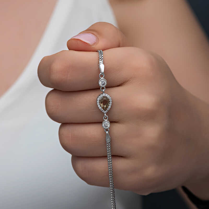 Gümüş Damla Zultanit Taşlı Kadın Bileklik