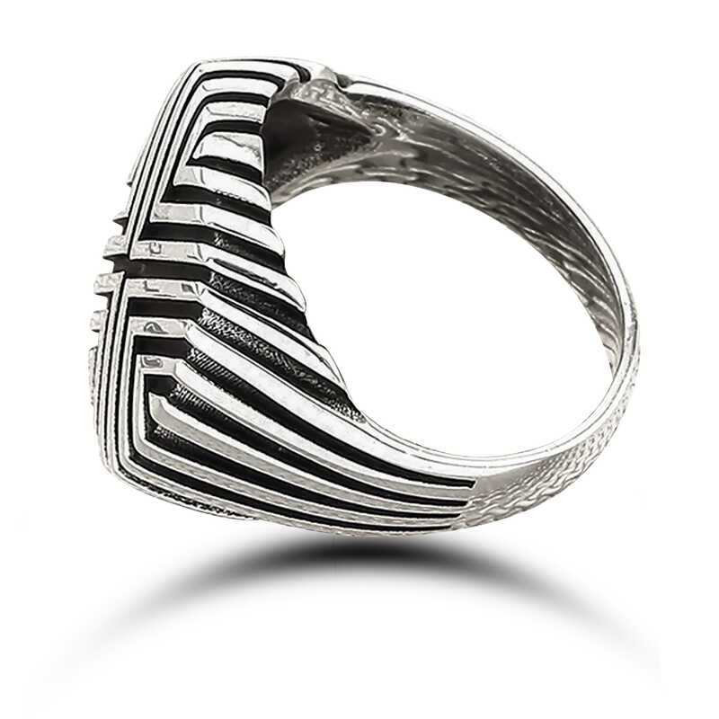 Bu şık tasarım sizler için oluşturuldu… Bu mükemmel yüzük; kendinize yada sevdiklerinize doğum gününde, babalar gününde yada özel günlerde hediye edebilirsiniz. Herkesin severek kullanacağı bu erkek yüzük 925 ayar gümüşten imal edilmiştir. Gümüş üzerine oksit kaplama yapılmıştır. Tüm gümüş erkek yüzüklerinde olduğu gibi gümüş desenli erkek yüzük de tamamı el emeği ile üretilmiştir. Gümüş ve değerli taşlar nedeniyle belirtilen ortalama ürün ağırlığında ± %10 sapma olabilmektedir.