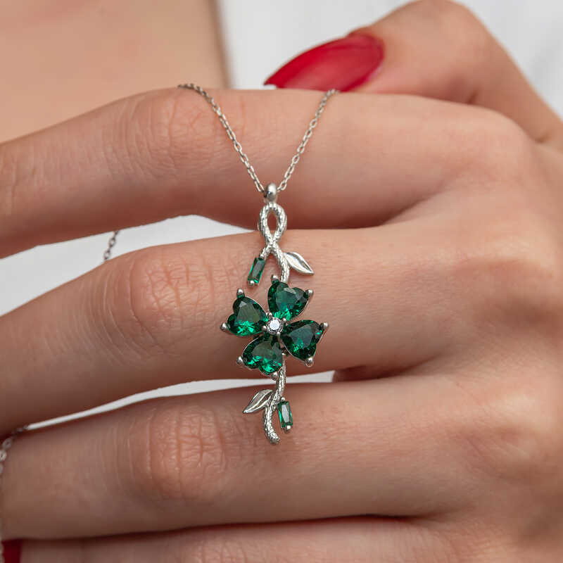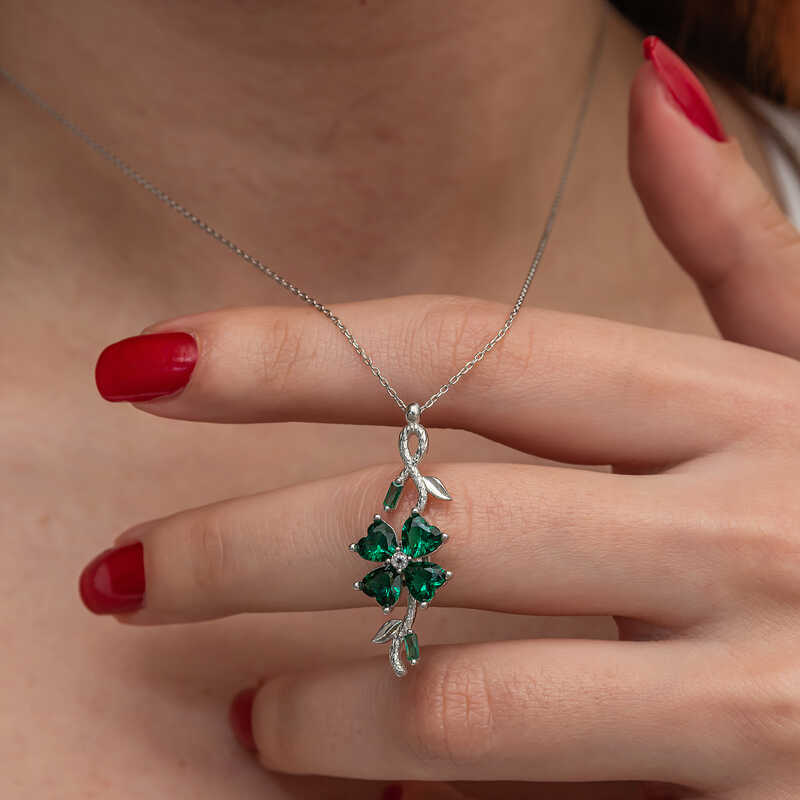 Gümüş Dönen Yeşil Yonca Kadın Kolye
