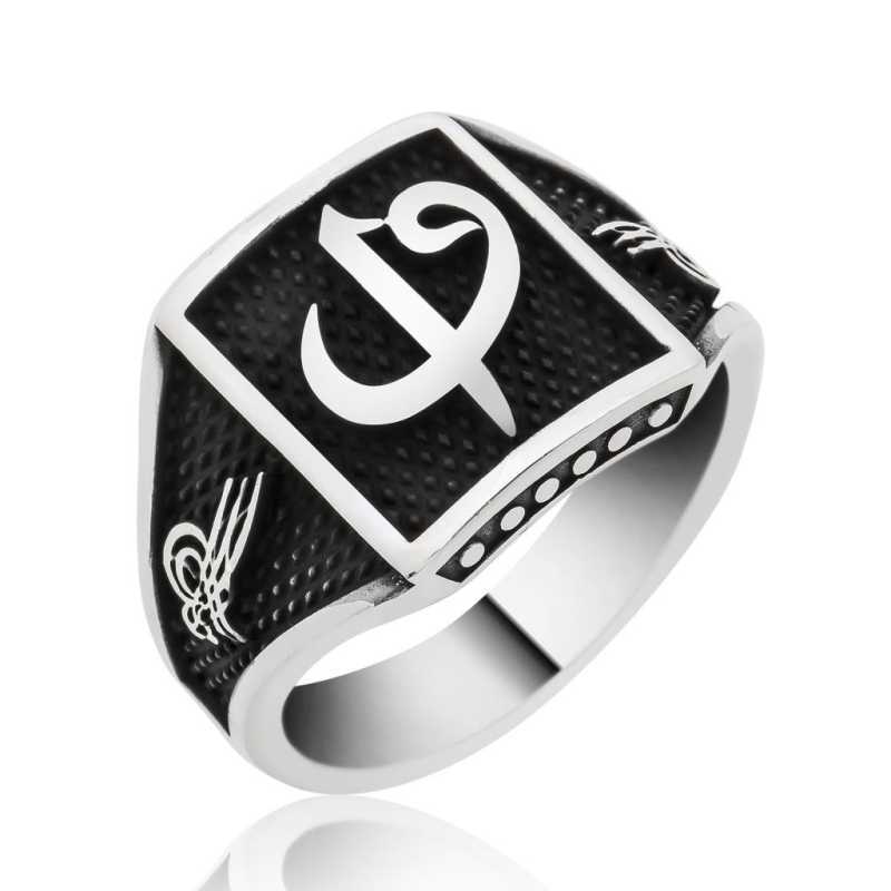 Gümüş Elif Vav Tuğra Armalı Erkek Yüzük