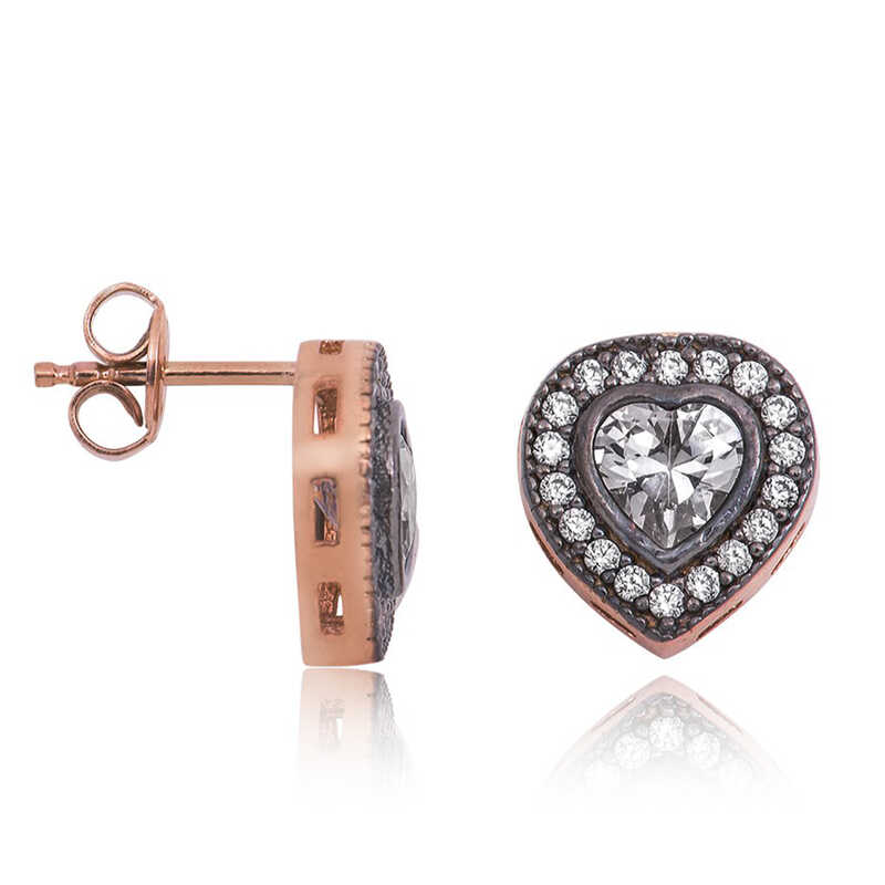 Gümüş Elmas Montür Kalpli Bayan Küpe