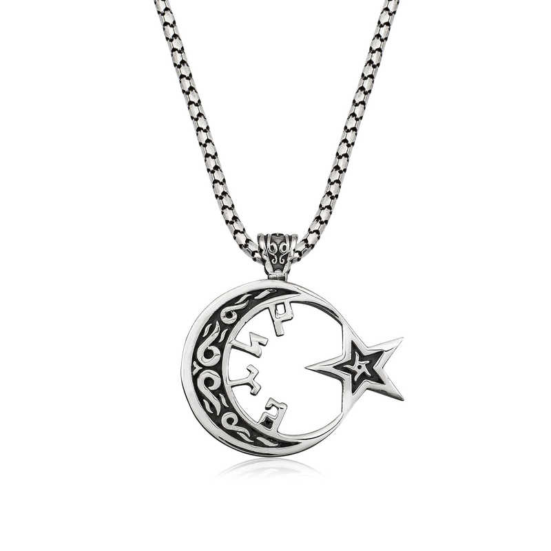 Gümüş Göktürkçe Türk Yazılı Ay Yıldız Erkek Kolye