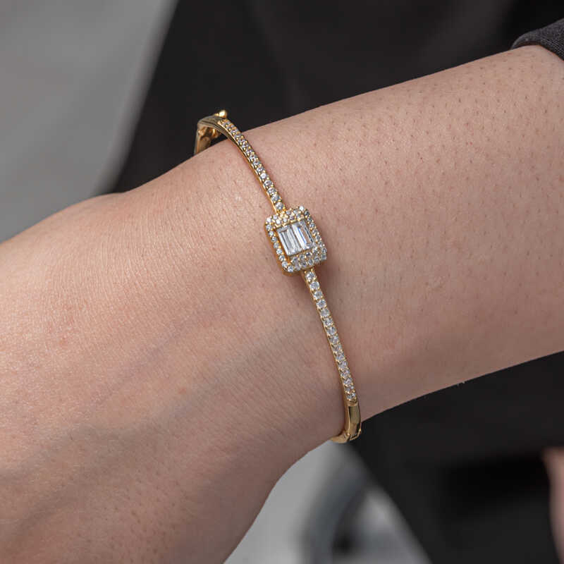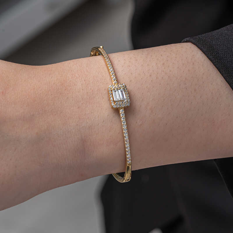 Gümüş Gold Baget Taşlı Kadın Bilezik