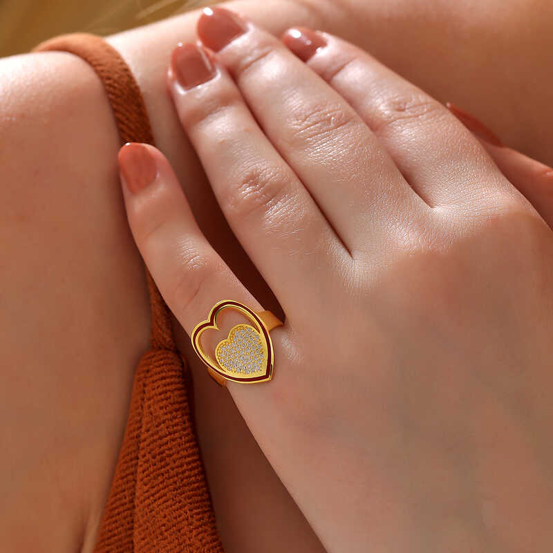 Gümüş Gold Beyaz Taşlı Kalpli Kadın Yüzük