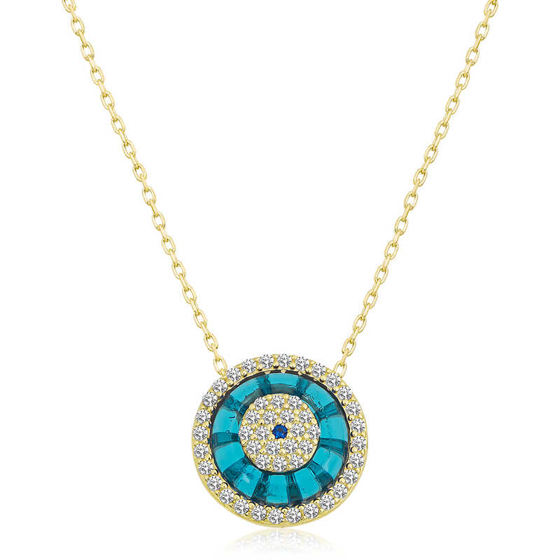 Gümüş Gold Camgöz Nazar Bayan Kolye