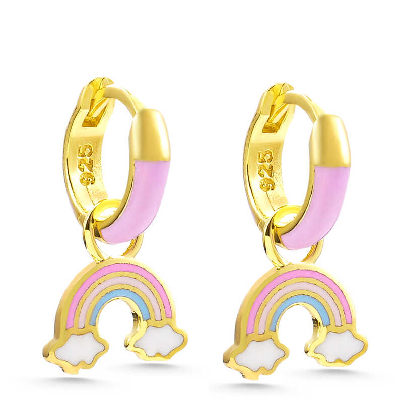 Gümüş Gold Gökkuşağı Sallantılı Çocuk Küpe