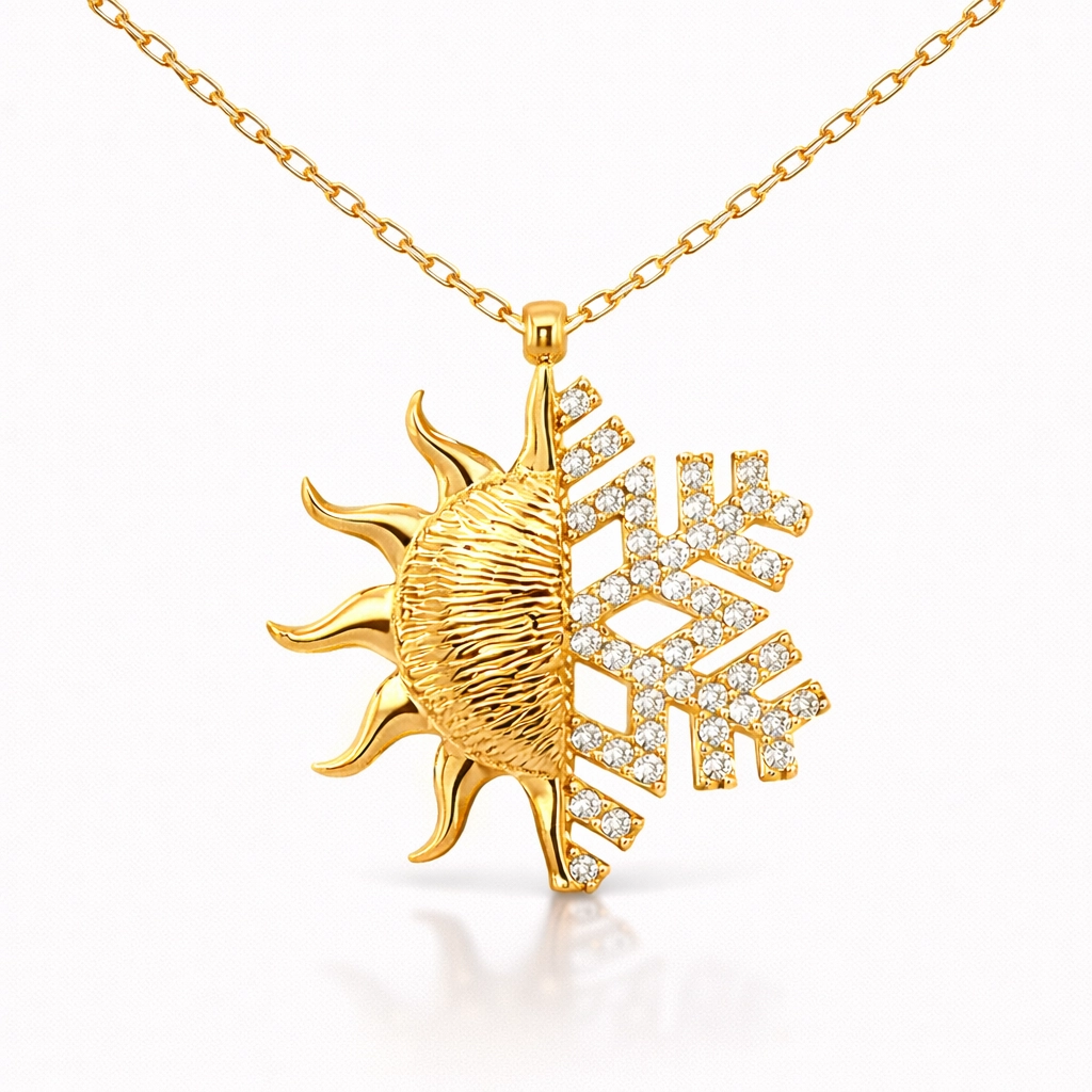 Güneş; ışığın, bilginin, iyiliğin, gücün ve yönetimin sembolüdür. Bu ışıl ışıl ve farklı tasarımıyla göz kamaştıran kolye; 925 ayar gümüşten imal edilmiştir. Gümüş üzerine gold kaplama yapılmıştır. Gold kaplama yapılan gümüş ürünler parlaklığını uzun süre muhafaza eder, oksitlenmesi gecikir. Gümüş güneş kartanesi bayan kolye üzerinde bulunan taşlar zirkon"dur. Tüm gümüş kolyelerde olduğu gibi gümüş güneş bayan kolye de tamamı el emeği ile üretilmiştir. Gümüş ve değerli taşlar nedeniyle belirtilen ortalama ürün ağırlığında ± %10 sapma olabilmektedir.