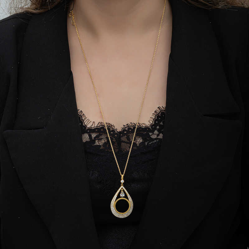 Gümüş Gold Kaplama Damla Çeyrek Takılabilen Kadın Kolye