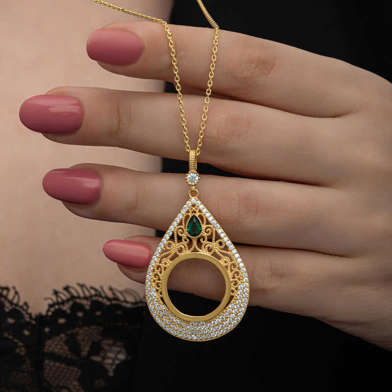 Gümüş Gold Kaplama Damla Çeyrek Takılabilen Kadın Kolye