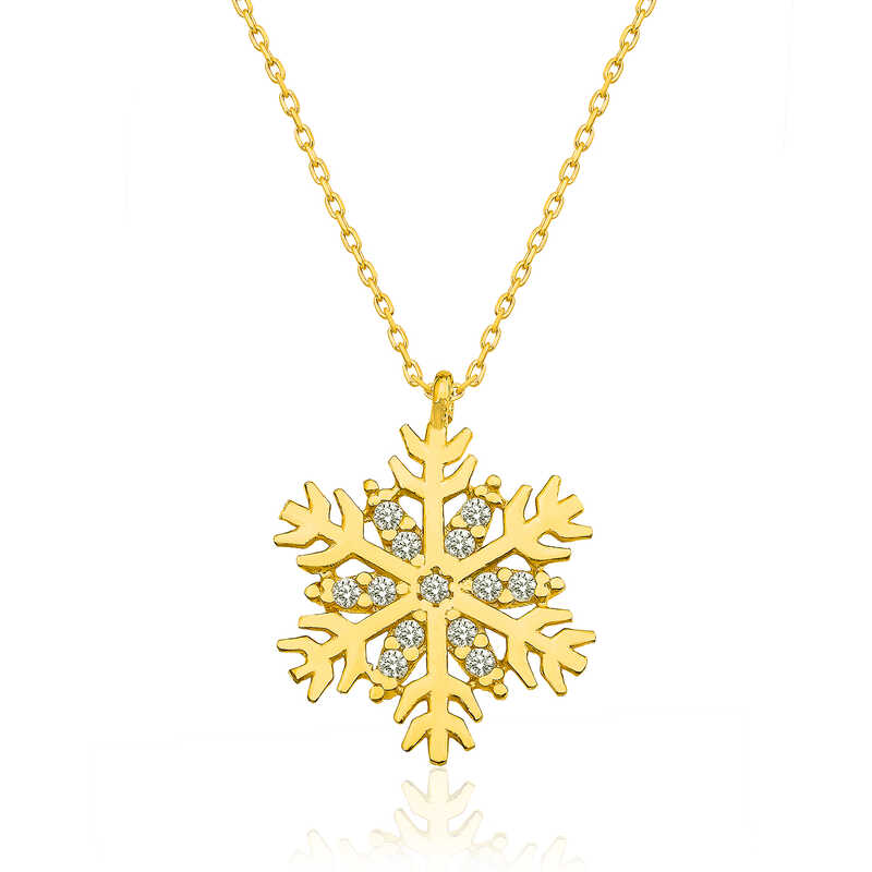 Kadınların ışıltısı, berraklığı kar tanesine benzetilip özel olarak tasarlanmıştır. Kar tanelerinin her birinin bayanlar gibi eşsiz ve ayrı kıymette olması onları özel kılan bir diğer özelliktir. Kar tanesinin asilliği her dönemde dikkat çekmeyi başarmıştır. Bunun yanında insanların tıpkı kar taneleri gibi birbirlerine zarar vermeden de mutlu bir şekilde yaşayabileceklerini sembolize etmektedir. Bu şık kolye; doğum günü hediyesi, sevgililer günü hediyesi veya annelere hediye olarak özel günlerde tercih edilebilecek mükemmel bir seçenektir. Kolye, 925 ayar gümüşten imal edilmiştir. Gümüş üzerine altın kaplama yapılmıştır. Altın kaplama yapılan ürünler parlaklığını uzun süre muhafaza eder, gümüşü sarı renge dönüştürür ve oksitlenmesi gecikir. Tüm gümüş bayan kolyelerde olduğu gibi bu gümüş gold kar tanesi bayan kolye de tamamı el emeği ile üretilmiştir. Gümüş ve değerli taşlar nedeniyle belirtilen ortalama ürün ağırlığında ± %10 sapma olabilmektedir.