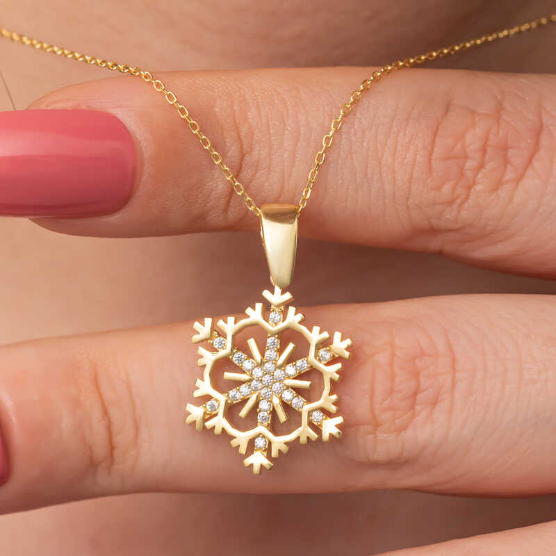 Kadınların ışıltısı, berraklığı kar tanesine benzetilip özel olarak tasarlanmıştır. Kar tanelerinin her birinin kadınlar gibi eşsiz ve ayrı kıymette olması onları özel kılan bir diğer özelliktir. Asilliği her dönemde dikkat çekmeyi başarmıştır. Bunun yanında insanların tıpkı kar taneleri gibi birbirlerine zarar vermeden de mutlu bir şekilde yaşayabileceklerini sembolize etmektedir. Bu şık kolye; doğum günü hediyesi, sevgililer günü hediyesi veya annelere hediye olarak özel günlerde tercih edilebilecek mükemmel bir seçenektir. Kolye, 925 ayar gümüşten imal edilmiştir. Gümüş üzerine gold kaplama yapılmıştır. Gold kaplama yapılan gümüş kadın kolye modelleri parlaklığını uzun süre muhafaza eder, oksitlenmesi gecikir. Zincir boyu ortalama 45 cm"dir. Tüm gümüş kadın kolye modellerinde olduğu gibi bu gümüş kar tanesi kadın kolye de tamamı el emeği ile üretilmiştir. Gümüş ve değerli taşlar nedeniyle belirtilen ortalama ürün ağırlığında ± %10 sapma olabilmektedir.