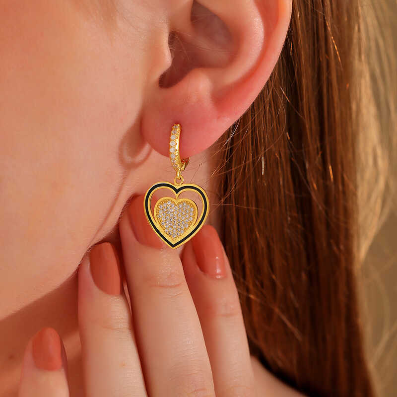 ​Gümüş Gold Sallantılı Kalp Kadın Küpe