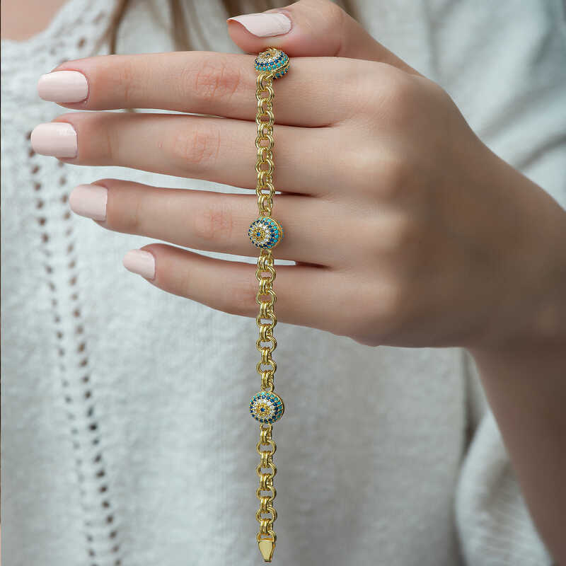 ​Gümüş Gold Sosyete Gözlü Zincir Bileklik