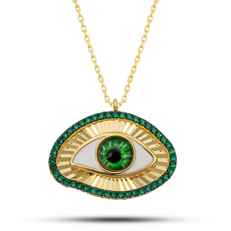 Gümüş Gold Zümrüt Göz Koruyucu Kadın Kolye