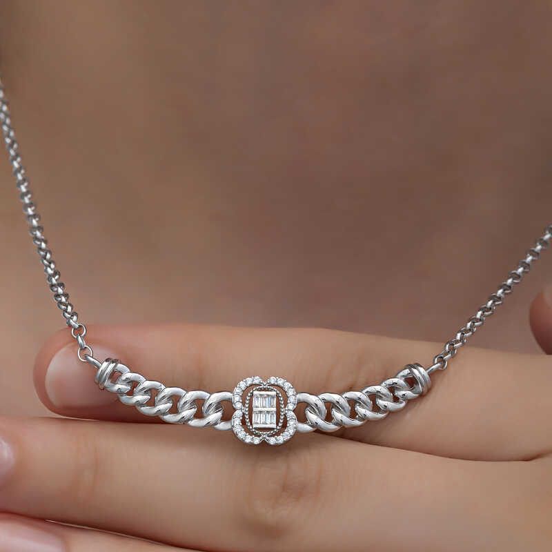 Gümüş Gurmet Zincirli Baget Taşlı Kadın Kolye