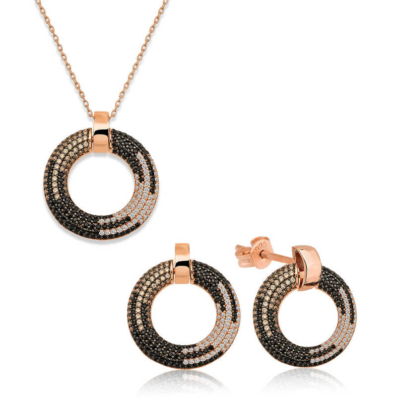Halka detayı ile göz kamaştıran set; zarifliğinizi ve şıklığınızı daimi kılmanıza yardımcı oluyor. Yenilikçi dokunuşlarla tasarlanmış bu set, özel gün ve gecelerde kombinlerinize eşlik edecek hoş bir aksesuardır. Siz de bu şık seti, takı koleksiyonunuza dahil edebilirsiniz. Halka bayan set; 925 ayar gümüşten imal edilmiştir. Gümüş üzerine rose kaplama yapılmıştır. Üzerinde bulunan taşlar zirkondur. Diğer setlerde olduğu gibi gümüş halka bayan set de el emeği ile üretilmiştir. Gümüş ve değerli taşlar nedeniyle belirtilen ortalama ürün ağırlığında ± %10 sapma olabilmektedir.