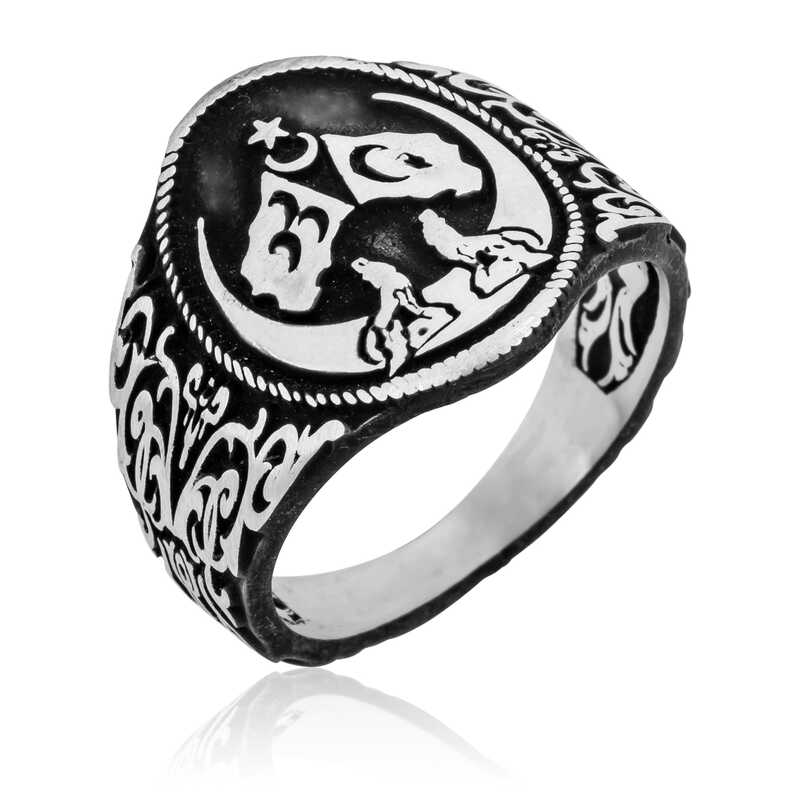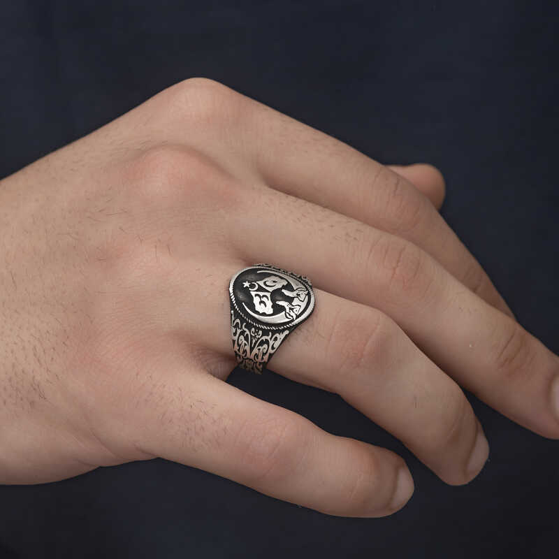 Üç Hilal; adalet, ahlak ve iman anlamlarını simgeler. İslamın üç kıtaya hükmetmesini sembolize eder. Osmanlı Devleti bu bayrağı kullanıp üç kıtaya da hükmetmiştir. Bir başka rivayete göre de İslam dinindeki Recep, Şaban ve Ramazan aylarını temsil eder. Günümüzde de üç hilal türk milliyetçiliğinin sembolü haline gelmiştir. Takılarda da üç hilal motifine sıklıkla rastlanmaktadır. Gümüş takı modellerinin vazgeçilmez sembolü olan üç hilal, bu özel yüzük modelinde hayat buluyor. Üç hilal yüzük modeli 925 ayar gümüşten imal edilmiştir. Yüzük üzerine oksit kaplama yapılmıştır. Oksit kaplama yapılan gümüş üç hilal yüzük eskitme bir görünüme sahip olur. Gümüş üç hilal yüzük modelinde olduğu gibi tüm gümüş yüzük modelleri tamamen el emeği ile üretilmiştir. Gümüş ve değerli taşlar nedeniyle belirtilen ortalama ürün ağırlığında ± %10 sapma olabilmektedir.