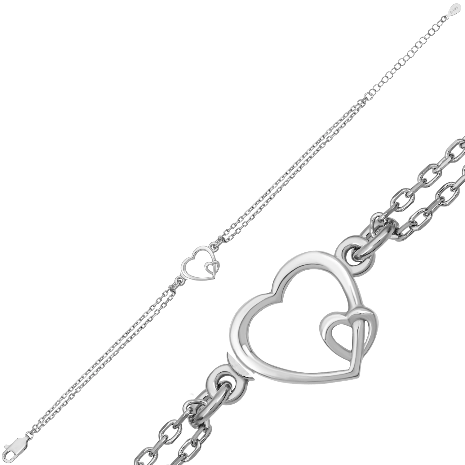 Gümüş İç İçe Aşk Kalp Kadın Bileklik