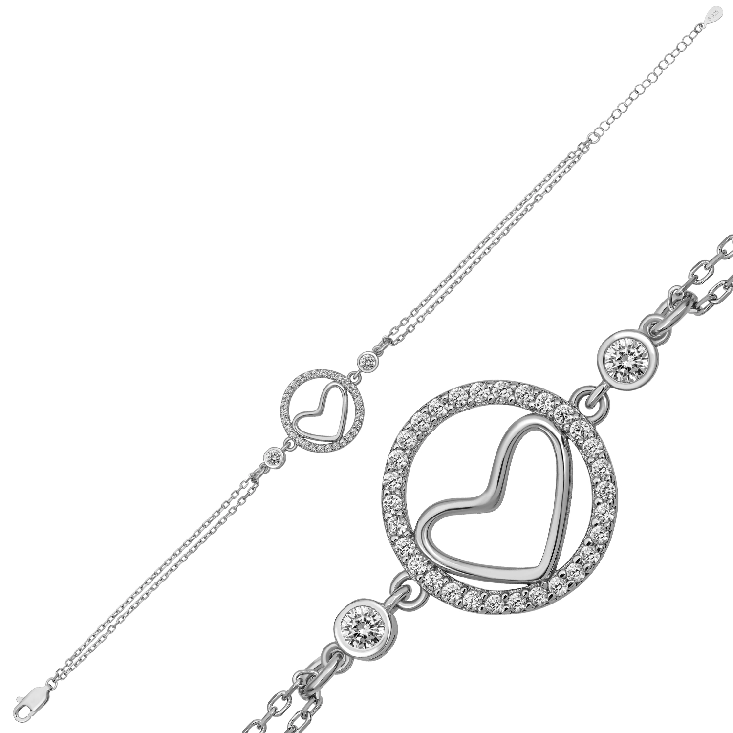 Zarif tasarımı ve ışıltılı detaylarıyla öne çıkan Gümüş Kalpli Halka Kadın Bileklik, şıklık ve romantizmi bir arada sunar. Taşlarla süslenmiş halka formunun içerisinde yer alan modern kalp figürü, tasarıma hem anlam hem de estetik bir dokunuş kazandırır. Yan kısımlardaki tek taş görünümlü zirkon detaylar bilekliğe ekstra parlaklık katar. 925 ayar gümüşten üretilen bu özel tasarım, kaliteli işçiliği sayesinde uzun süreli kullanım imkânı sunar. İnce ve zarif zincir yapısı bilekte hafif ve konforlu bir kullanım sağlar. Günlük kombinlerinize ışıltılı bir dokunuş katarken, özel günlerde de şıklığınızı tamamlar. Sevgi ve bağlılığı simgeleyen bu anlamlı bileklik, sevdiklerinize hediye edebileceğiniz zarif ve özel bir alternatiftir.Gümüş ve değerli taşlar nedeniyle belirtilen ortalama ürün ağırlığında ± %10 sapma olabilmektedir.