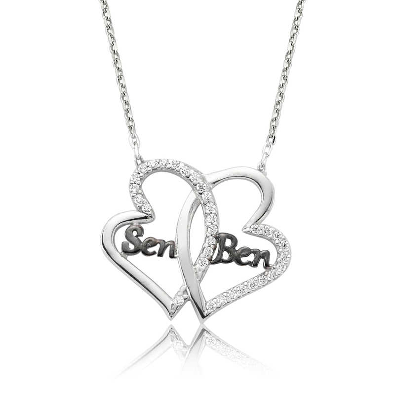 Gümüş Kalpli Sen Ben Bayan Kolye