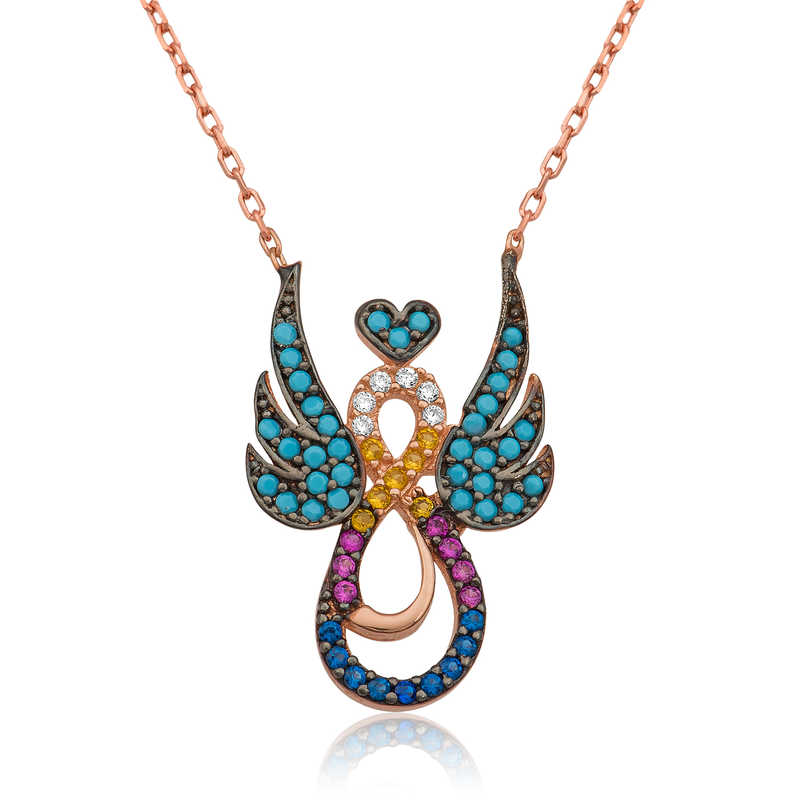 Sonsuza kadar sürecek aşkı sevdiğinize anlatmanın en güzel yollarından biri de sonsuzluk sembolüdür. Kanatlı sonsuzluk sembolü ebedi aşkın ve sadakatin işareti olarak evlilik yıl dönümü veya sevgililer günü gibi özel günlerde alınabilecek anlamlı hediyelerinden biri olabilecektir. Bu şık kolye modeli 925 ayar gümüşten imal edilmiştir. Gümüş üzerine rose altın kaplama yapılmıştır. Rose altın kaplama yapılan gümüş kolye modelleri parlaklığını uzun süre muhafaza eder. Zincir uzunluğu 45 m"dir. Ürünlerimizin tamamında olduğu gibi Gümüş Kanatlı Sonsuz Aşk Kolye modeli de el emeği ile üretilmiştir. Gümüş ve değerli taşlar nedeniyle belirtilen ortalama ürün ağırlığında ± %10 sapma olabilmektedir.