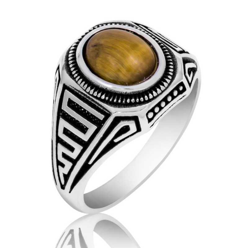 Gümüş Kaplan Gözü Erkek Yüzük