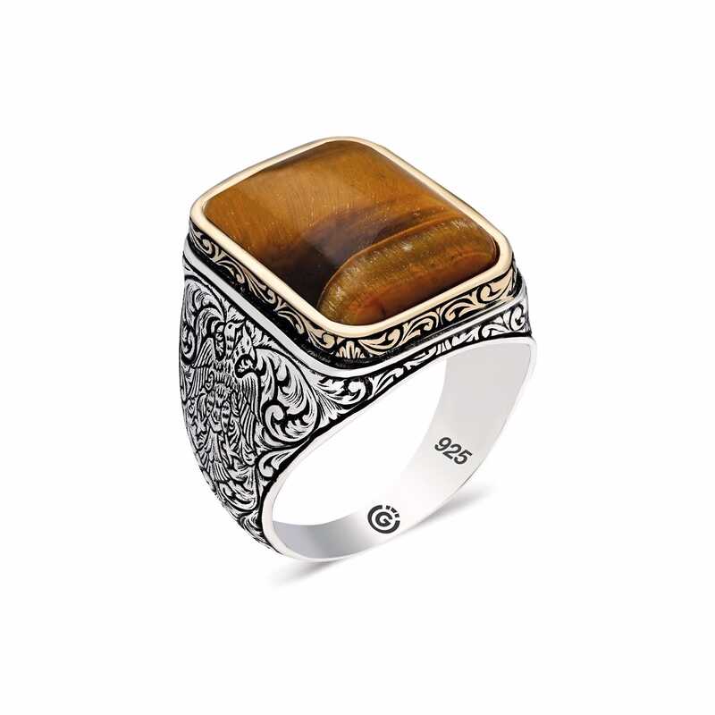 Gümüş Kaplangözü Taşlı Kare Erkek Yüzük