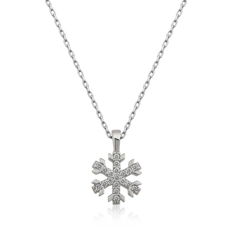 Kadınların ışıltısı, berraklığı kar tanesine benzetilip özel olarak tasarlanmıştır. Kar tanelerinin her birinin bayanlar gibi eşsiz ve ayrı kıymette olması onları özel kılan bir diğer özelliktir. Asilliği her dönemde dikkat çekmeyi başarmıştır. Bunun yanında insanların tıpkı kar taneleri gibi birbirlerine zarar vermeden de mutlu bir şekilde yaşayabileceklerini sembolize etmektedir. Bu şık kolye; doğum günü hediyesi, sevgililer günü hediyesi veya annelere hediye olarak özel günlerde tercih edilebilecek mükemmel bir seçenektir. Gümüş Kar Tanesi Bayan Kolye, 925 ayar gümüşten imal edilmiştir. Gümüş üzerine rodyum kaplama yapılmıştır. Rodyum kaplama yapılan ürünler parlaklığını uzun süre muhafaza eder, oksitlenmesi gecikir. Üzerinde bulunan taşlar zirkondur. Tüm gümüş bayan kolyelerde olduğu gibi bu gümüş kar tanesi bayan kolye de tamamı el emeği ile üretilmiştir. Gümüş ve değerli taşlar nedeniyle belirtilen ortalama ürün ağırlığında ± %10 sapma olabilmektedir.