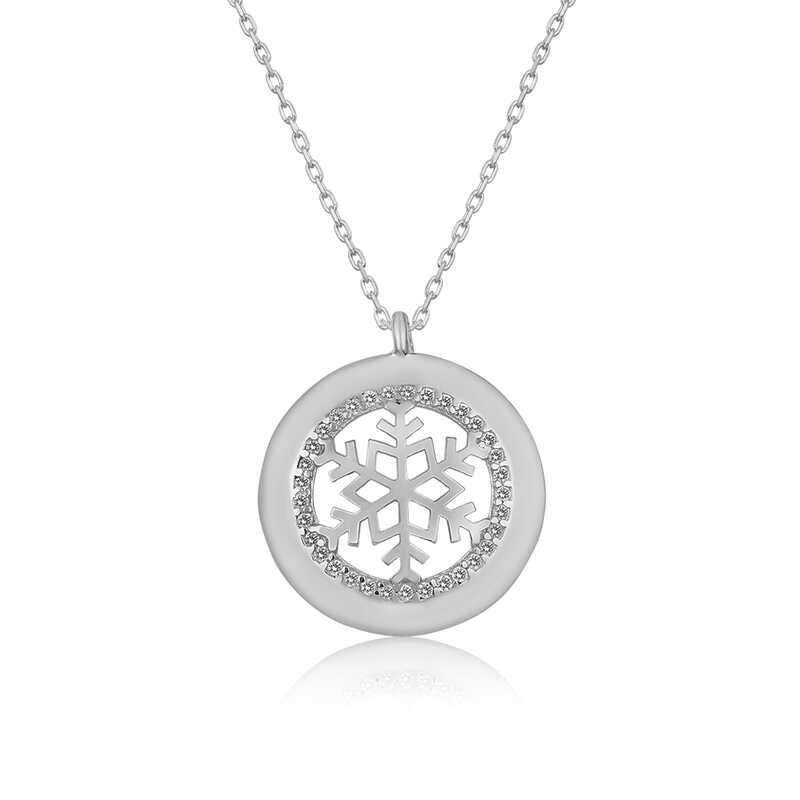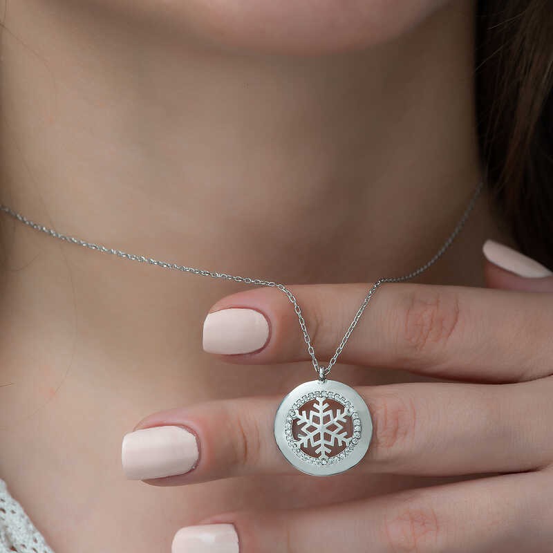 Kadınların ışıltısı, berraklığı kar tanesine benzetilmektedir. Kar taneleri sevdiğiniz kişiyi sembolize etmektedir. Kar tanelerinin her birinin bayanlar gibi eşsiz ve ayrı kıymette olması onları özel kılan bir diğer özelliktir. Kar tanesinin asilliği her dönemde dikkat çekmeyi başarmıştır. Bunun yanında insanların tıpkı kar taneleri gibi birbirlerine zarar vermeden de mutlu bir şekilde yaşayabileceklerini sembolize etmektedir. Bu şık ve anlamlı kolye; doğum günü hediyesi, sevgililer günü hediyesi veya annelere hediye olarak özel günlerde tercih edilebilecek mükemmel bir seçenektir. Kolye, 925 ayar gümüşten imal edilmiştir. Gümüş üzerine rodyum kaplama yapılmıştır. Rodyum kaplama yapılan ürünler parlaklığını uzun süre muhafaza eder ve ürünün oksitlenmesi gecikir. Tüm gümüş bayan kolyelerde olduğu gibi bu gümüş kar tanesi bayan kolye de tamamı el emeği ile üretilmiştir. Gümüş ve değerli taşlar nedeniyle belirtilen ortalama ürün ağırlığında ± %10 sapma olabilmektedir.