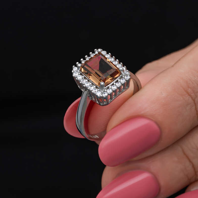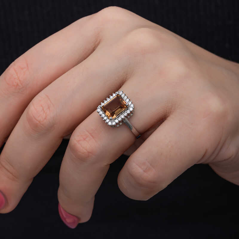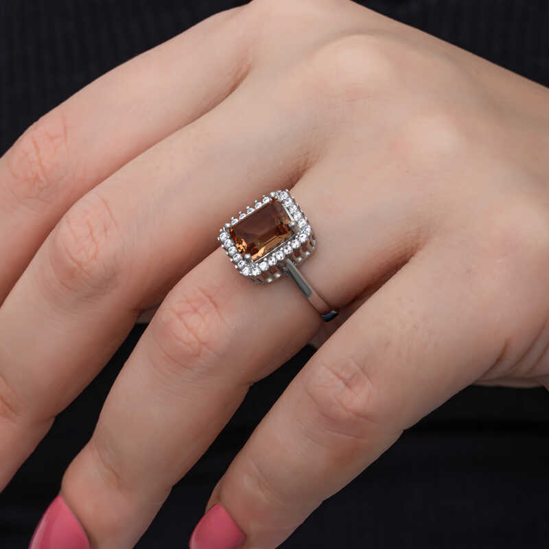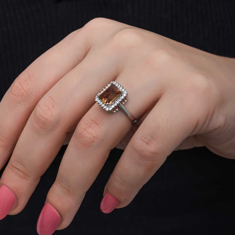 Gümüş Kare Baget Zultanit Taşlı Kadın Yüzük