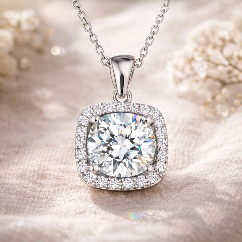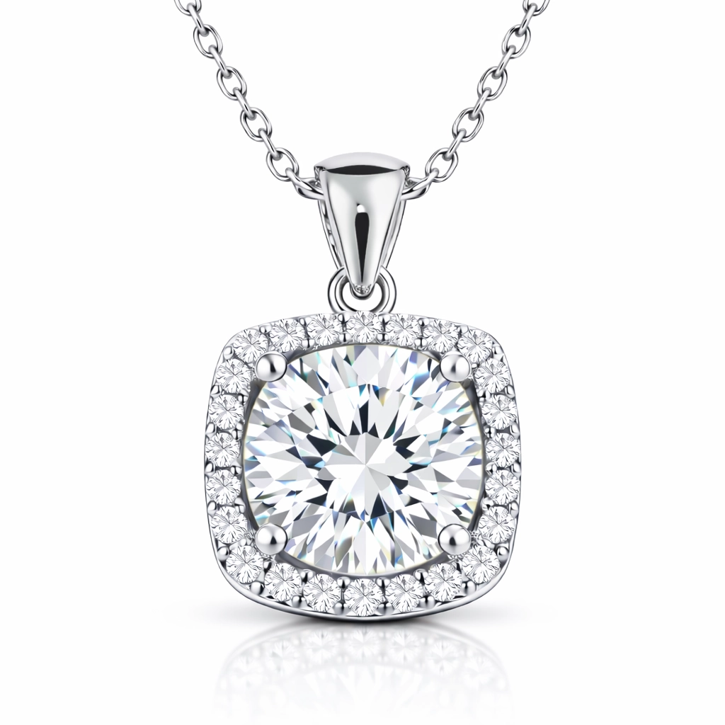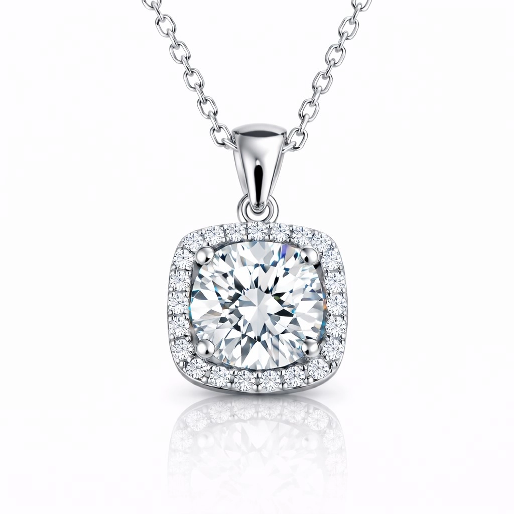 Gümüş Kare Montür Tek Taş Kolye