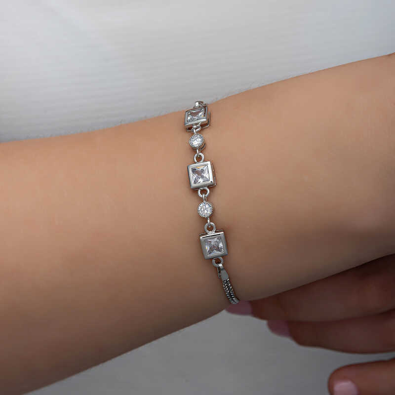 Gümüş Kare Zirkon Taşlı Kadın Bileklik