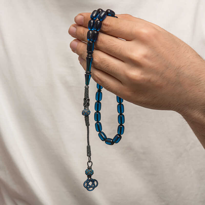 Kehribar, çam ağacı reçinesinin toprak altında uzun yıllar boyunca birikerek oluşan bir maddedir. Hemen hemen taş ile aynı sertliktedir fakat yoğunluğu düşüktür. Çam kokusu yayar. Oluşumu uzun zaman aldığından ve yapay olarak yapılamadığından değerli bir maddedir. Sıkma kehribar ise kehribar taşından farklı olarak onun özelliklerini taşıyan, görüntü itibariyle ona benzeyen fakat gerçek olmayan bir malzemedir. Ülkemizde ve dünyanın bir çok yerinde kehribar taşından çeşitli malzemeler üretilmiştir. Ülkemizde en yaygın olarak tesbih üretilmektedir. Kehribar tesbihler elde ısındıkça kehribar benzeri bir koku verir ve renk değiştirir. Bir çok rengi vardır. Hatta iki rengin birleşiminden oluşan kehribar tesbih modelleri de vardır. Genellikle gümüş püskül ile kullanılır veya sistemli olarak da kullanılabilir. Ülkemizin güzide tesbih ustaları bu malzemeyi sıklıkla işlemek suretiyle çeşitli sanat eserleri meydana getirirler. Bu tesbihler de koleksiyonerler tarafından alınıp satılmaktadır. Gümüş 1000 ayar kazaz püsküllü sıkma kehribar tesbih modeli de günlük hayatta kullanılabilecek çok şık bir tesbih çeşididir. Özel günlerin vazgeçilmez hediyesi sıkma kehribar tesbihler erkekler için doğum günü, sevgililer günü ve babalar günü gibi özel zamanlarda hediye olarak tercih edilebilir. Gümüş kazaz püsküllü sıkma kehribar tesbih modeli diğer kehribar tesbih modellerinde olduğu gibi tamamen el emeği ile imal edilmiştir.