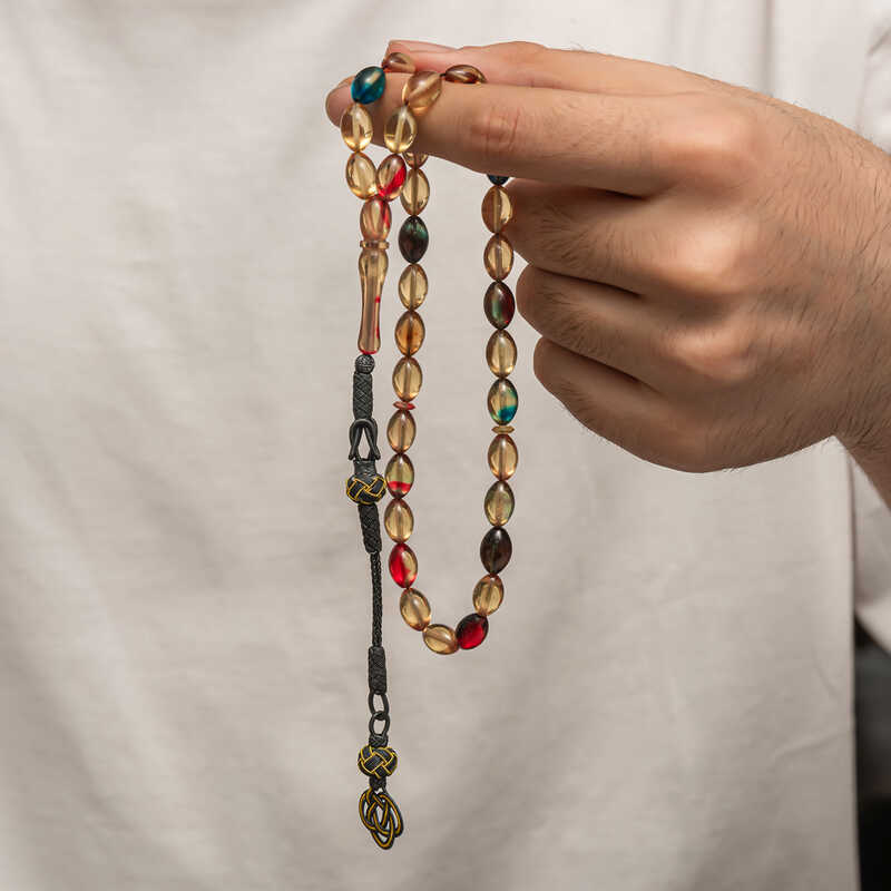 Kehribar, çam ağacı reçinesinin toprak altında uzun yıllar boyunca birikerek oluşan bir maddedir. Hemen hemen taş ile aynı sertliktedir fakat yoğunluğu düşüktür. Çam kokusu yayar. Oluşumu uzun zaman aldığından ve yapay olarak yapılamadığından değerli bir maddedir. Sıkma kehribar ise kehribar taşından farklı olarak onun özelliklerini taşıyan, görüntü itibariyle ona benzeyen fakat gerçek olmayan bir malzemedir. Ülkemizde ve dünyanın bir çok yerinde kehribar taşından çeşitli malzemeler üretilmiştir. Ülkemizde en yaygın olarak tesbih üretilmektedir. Kehribar tesbihler elde ısındıkça kehribar benzeri bir koku verir ve renk değiştirir. Bir çok rengi vardır. Hatta iki rengin birleşiminden oluşan kehribar tesbih modelleri de vardır. Genellikle gümüş püskül ile kullanılır veya sistemli olarak da kullanılabilir. Ülkemizin güzide tesbih ustaları bu malzemeyi sıklıkla işlemek suretiyle çeşitli sanat eserleri meydana getirirler. Bu tesbihler de koleksiyonerler tarafından alınıp satılmaktadır. Gümüş 1000 ayar kazaz püsküllü sıkma kehribar tesbih modeli de günlük hayatta kullanılabilecek çok şık bir tesbih çeşididir. Özel günlerin vazgeçilmez hediyesi sıkma kehribar tesbihler erkekler için doğum günü, sevgililer günü ve babalar günü gibi özel zamanlarda hediye olarak tercih edilebilir. Gümüş kazaz püsküllü sıkma kehribar tesbih modeli diğer kehribar tesbih modellerinde olduğu gibi tamamen el emeği ile imal edilmiştir.