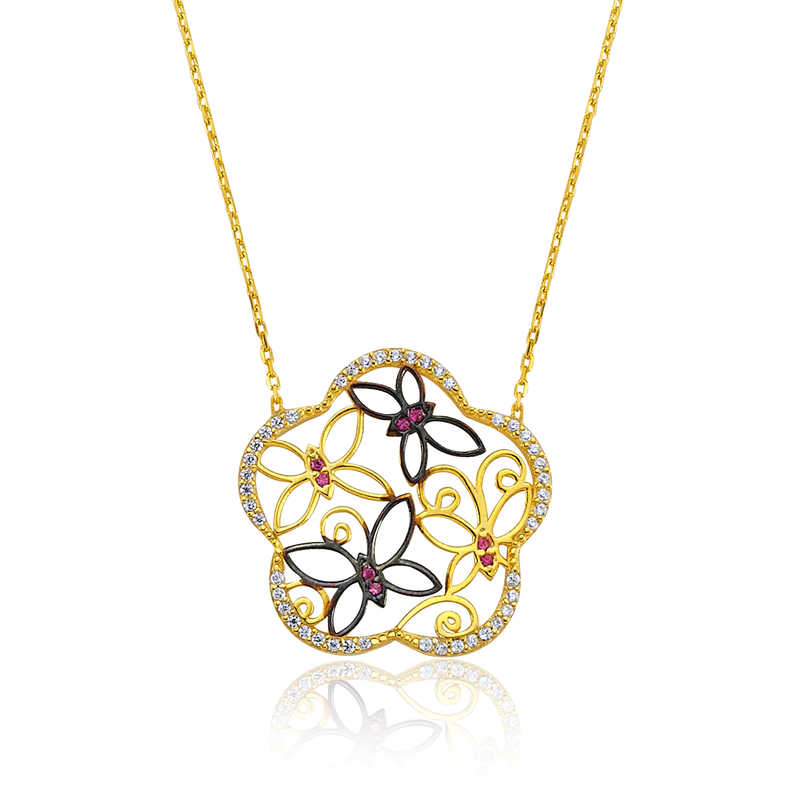 Gümüş Kelebek Çiçeği Bayan Kolye
