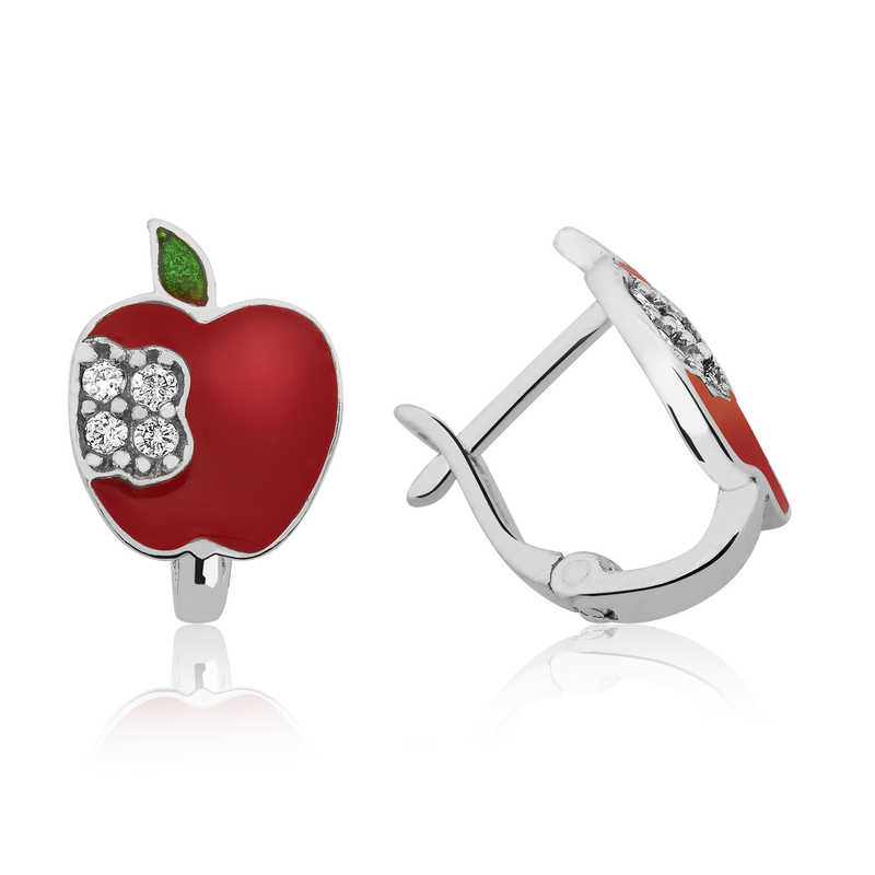En kıymetlileriniz, bebekleriniz, çocuklarınız için hazırlanan, sevimli figürlerle tasarlanan birbirinden zarif ve renkli bebek ve çocuk küpeleri ile ömür boyu saklanabilecek, anlamlı bir hediye seçebilirsiniz. Elma figürlü çocuk küpesi 925 ayar gümüşten imal edilmiştir. Gümüş üzerine rodyum kaplama yapılmıştır. Rodyum kaplama yapılan gümüş çocuk küpeleri parlaklığını uzun süre muhafaza eder ve oksitlenmesi gecikir. Küpe üzerinde bulunan taşlar zirkondur. Tüm çocuk küpe modelleri el emeği ile üretilmiştir. Gümüş ve değerli taşlar nedeniyle belirtilen ortalama ürün ağırlığında ± %10 sapma olabilmektedir.