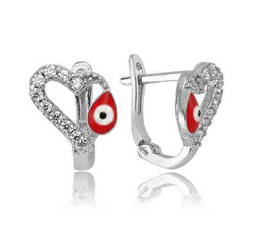 Gümüş Kırmızı Kalpli Çocuk Küpesi