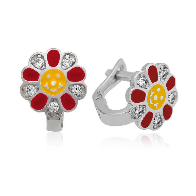Gümüş Kırmızı Papatya Çocuk Küpesi