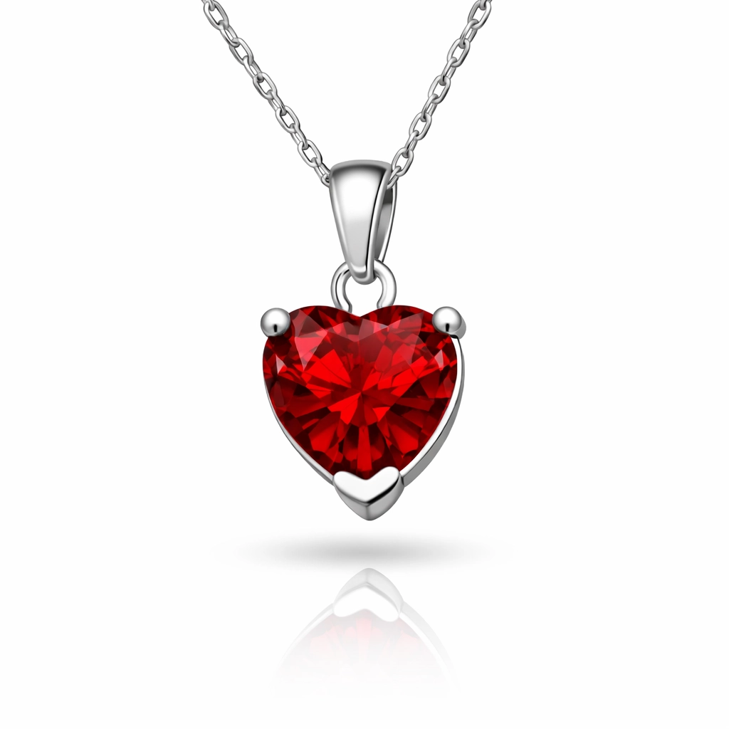 Gümüş Kırmızı Taşlı Kalpli Kadın Kolye