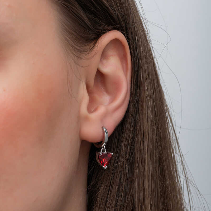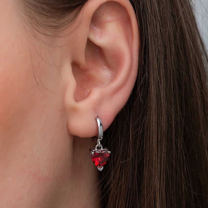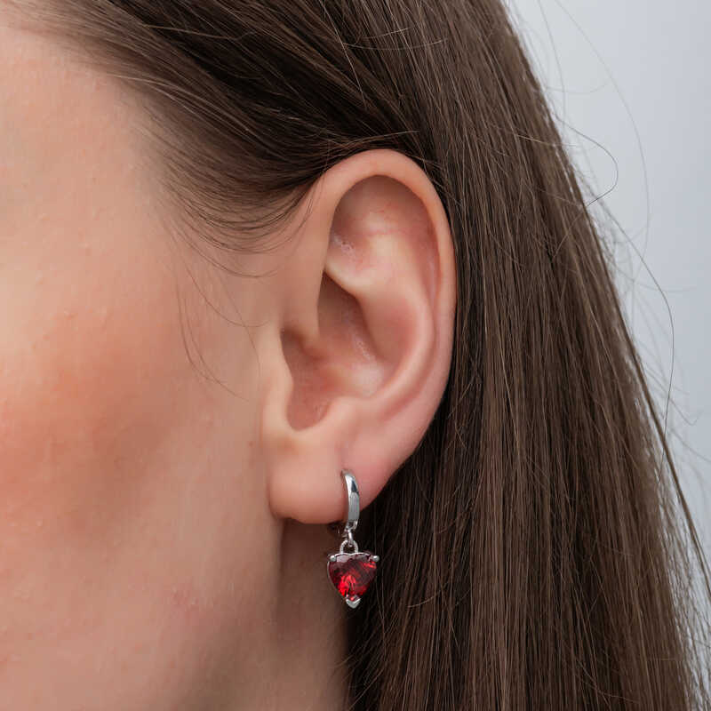 Gümüş Kırmızı Taşlı Kalpli Kadın Küpe